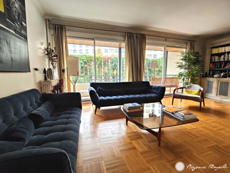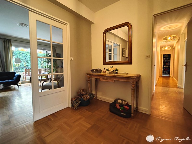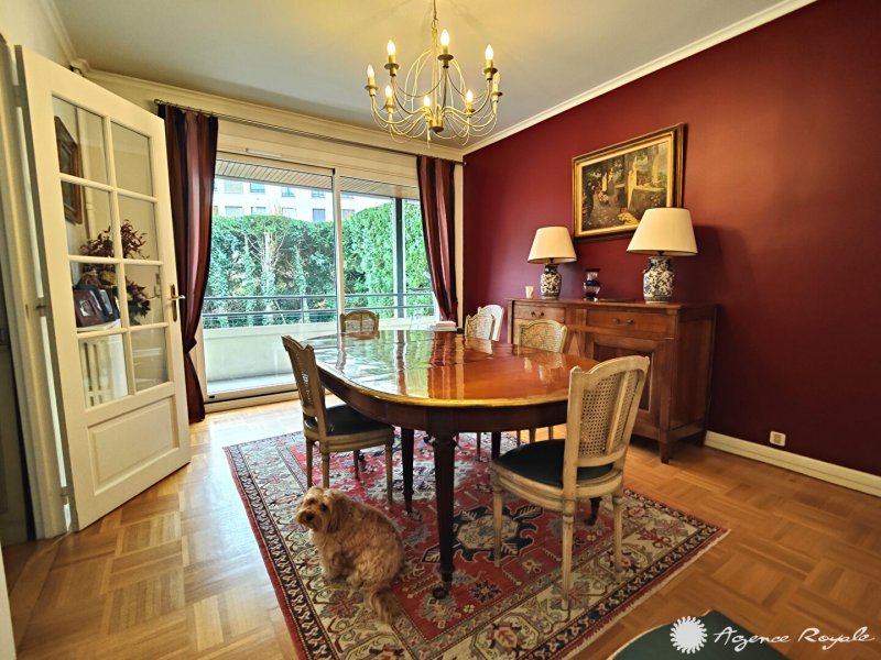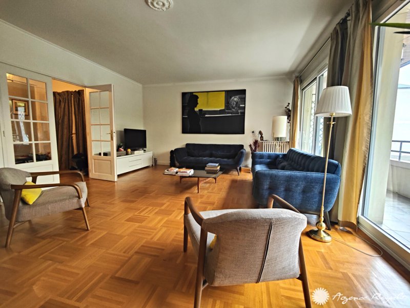 Dans résidence avec Ascenseur, très bel appartement en bon état de 161,25m² avec grand Balcon de 15m², Beau Séjour de 50m² avec parquet sur grand Balcon Sud Ouest, Cuisine équipée, 4/5 grandes Chambres avec parquet de12 à 18m², Espace Bureau, Salle de Bains + Douche, Salle de Bains, Dressing, placards, grande Buanderie avec fenêtre, 2 Caves, 2 PARKINGS SOUS/SOL, Local vélos commun. Appartement lumineux, de très beaux volumes.