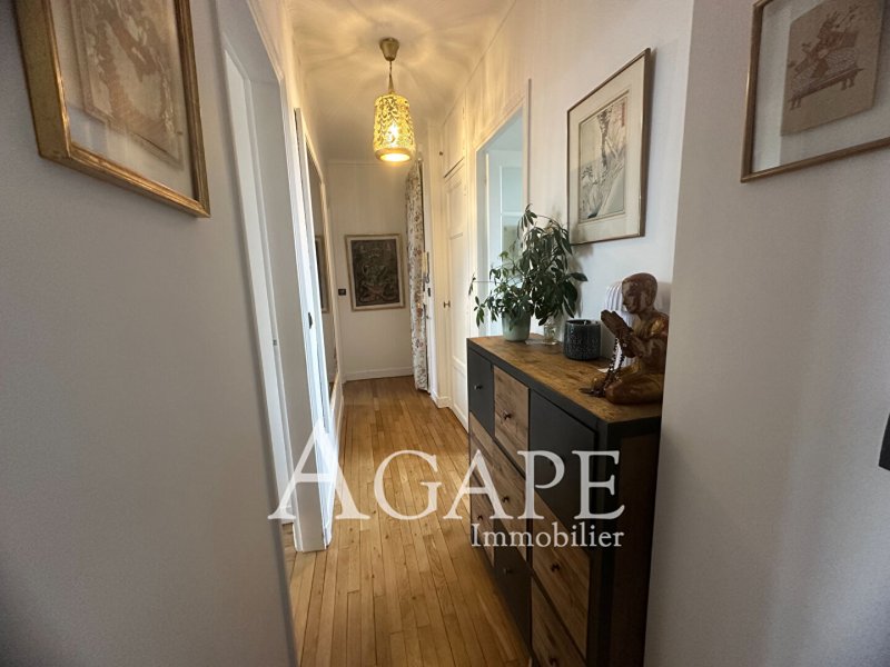 A SAINT-MAUR-DES-FOSSÉS: dans un secteur résidentiel, proche des commerces et écoles, à 7 minutes du RER Le Parc de Saint Maur et des Bords de Marne, cet APPARTEMENT traversant exposé Est-Ouest de 65,05m², doté de beaucoup de charme est impeccable. Il est situé au 5ème étage avec ascenseur dans un immeuble ancien entretenu de style art déco, avec vue dégagée sur Paris et au calme. Il se compose d'une entrée desservant deux grandes chambres, un séjour, avec cheminée, une cuisine aménagée indépendante, ainsi qu'une salle de bain et WC indépendant. L'appartement très lumineux dispose d'une belle hauteur sous plafond avec moulures, de fenêtres en double-vitrage et les parquets d'origine en chêne massif ont été rénovés et donnent un ton chaleureux aux pièces de vie. Une cave complète ce bien. Un local vélos à usage collectif se situe au RC. Bien soumis à la copropriété (17 lots dont 13 lots d'habitation) quote-part budget prévisionnel (dépenses courantes) : 4 218 euros /an