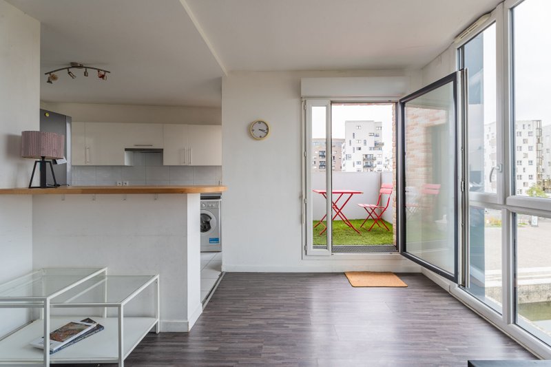 Il se compose d'un grand séjour lumineux avec cuisine ouverte et 2 balcons.