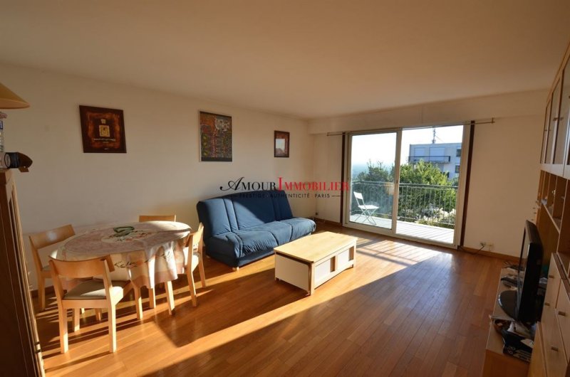 Suresnes / Mont Valérien / Vigne - appartement 67 m² - 3ème étage - 2 chambres. Idéalement situé au calme sur la colline du Mont Valérien dans une résidence avec vue dégagée sur Paris et la Défense, bel appartement familial traversant exposé plein sud sans vis-à-vis avec ascenseur comprenant : entrée, grand séjour très ensoleillé avec parquet et baies vitrées donnant sur un balcon/terrasse, cuisine séparée, deux chambres sur jardin, salle de bains, wc séparé, rangements. Très lumineux. Bon plan. Calme. Fonctionnel. Rare. Cave. Parking. Exclusivité Amour Immobilier. Pour plus d'informations ou pour organiser une visite, merci de contacter Laurent BOURGNINAUD au 06 13 60 57 72 ou votre interlocuteur habituel chez AMOUR IMMOBILIER.