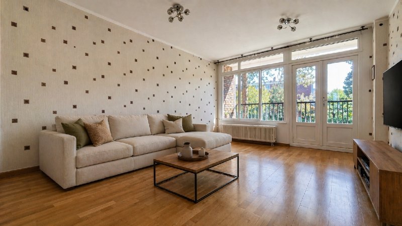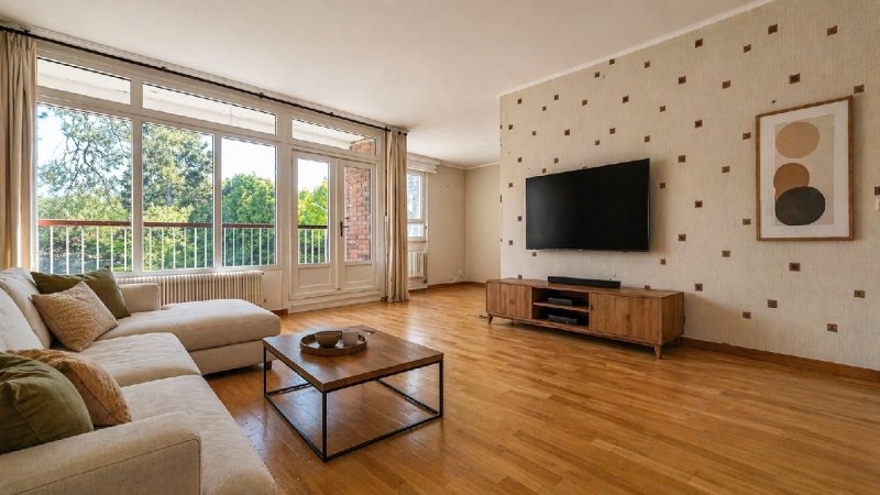 Le séjour lumineux souvre sur un balcon avec vue dégagée sur un parc, apportant calme et verdure au quotidien. Il est complété par un séjour salon/salle à manger, une cuisine indépendante, deux chambres, coin dressing, une salle de bain et wc séparés.