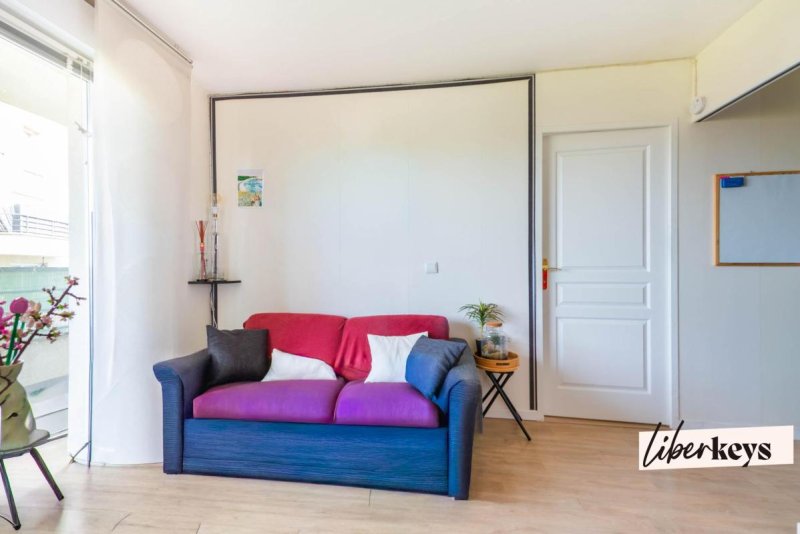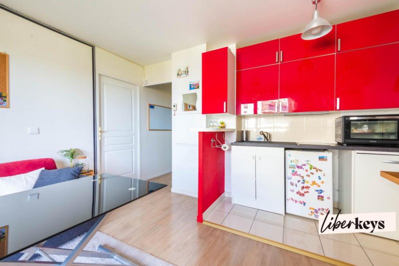 L'appartement offre une distribution fonctionnelle et optimisée. Il se compose d'une entrée, d'un séjour lumineux avec cuisine ouverte, créant un espace de vie convivial et agréable au quotidien. Le séjour s'ouvre sur un balcon, véritable prolongement extérieur, appréciable pour prendre l'air, installer une petite table ou profiter d'un espace supplémentaire.