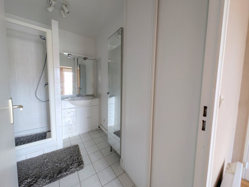 Entrée avec placards, wc séparés, séjour avec cuisine ouverte, une chambre avec placard et une salle d'eau attenante. Balcon de 5m².