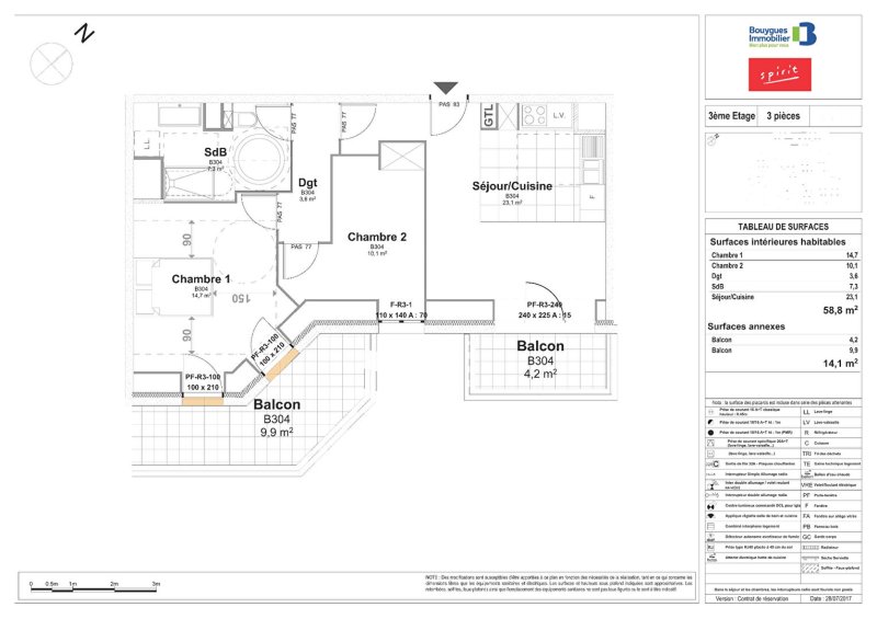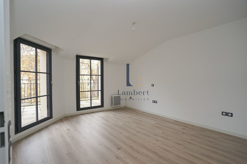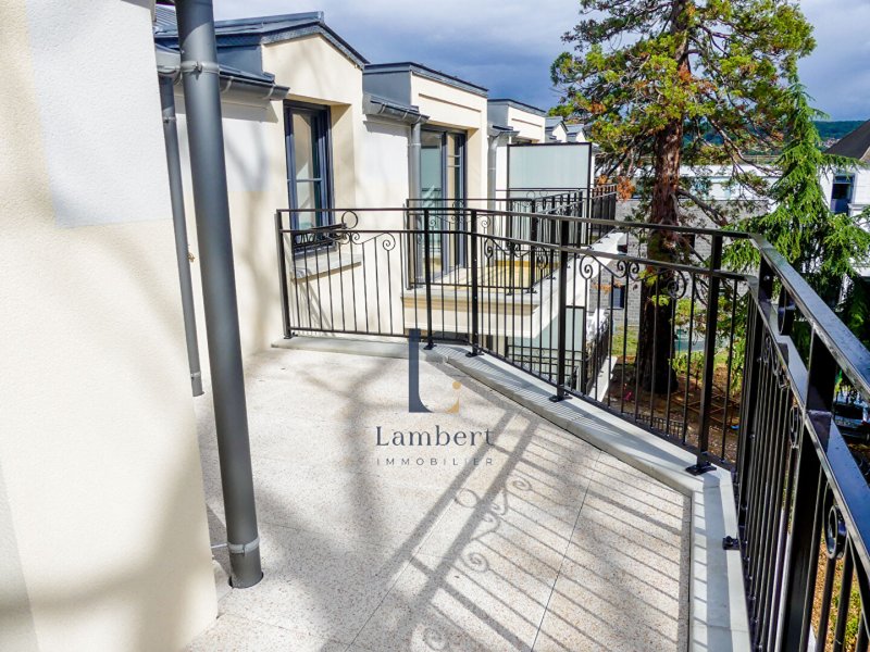 VERNEUIL- Hyper-Centre, résidence ALCHIMIE (2020)- Résidence sécurisée à proximité immédiate de la gare et des commerces du centre-ville. Au dernier étage avec ascenseur, 3 Pièces avec deux grands balcons donnant sur parc arboré: séjour avec coin-cuisine équipé, dégagement desservant deux chambres dont une grande (14,7 m²) , salle d'eau avec wc- Parking couvert privatif- Chauffage individuel électrique- Eau chaude sanitaire collective avec compteurs-