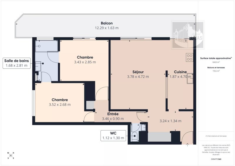 Dans une résidence de standing, proche du centre ville, des écoles, et des bus, appartement 3 pièces de 65.33 m² en très bon état, calme et lumineux. Comprenant : entrée avec placard, salon avec cuisine américaine équipée donnant sur 26 m² de balcon-terrasse orienté ouest, couloir distribuant 2 chambres, salle d'eau, toilettes.