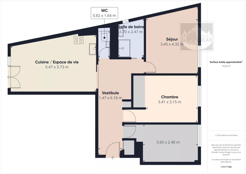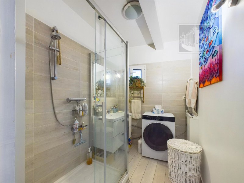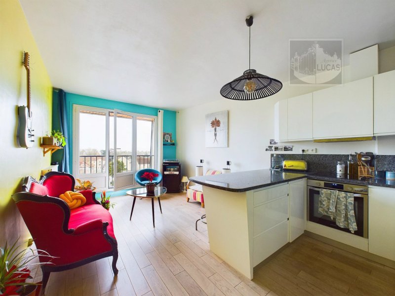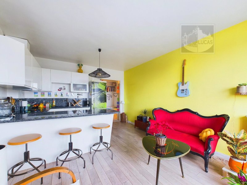 Dans un petit immeuble bénéficiant d'un jardin collectif en plein cœur du village, appartement 4 pièces de 76.03 m² en bon état, calme et lumineux. Comprenant : entrée avec placard distribuant un salon avec cuisine américaine, 3 chambres, salle d'eau, wc. Cave.