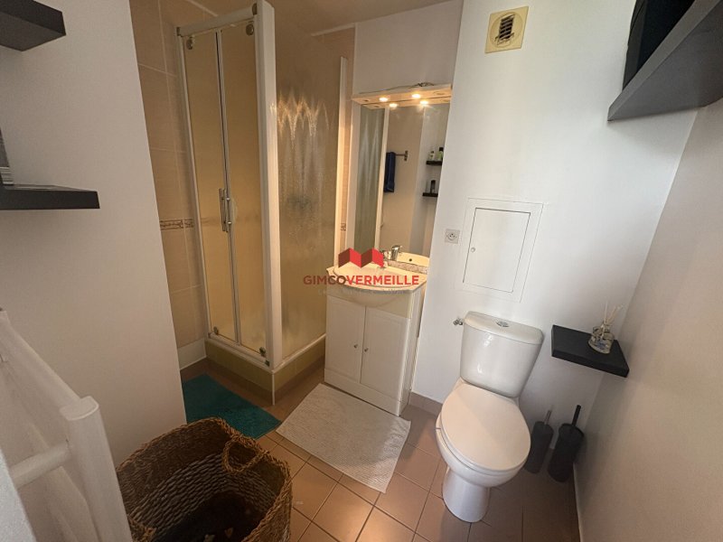 Ce bien d'une surface de 28.43m² est composé d'une entrée avec placard doté d'un branchement pour le lave-linge, d'un séjour avec cuisine américaine aménagée, d'un coin nuit séparé et d'une dsalle de douches avec wc.