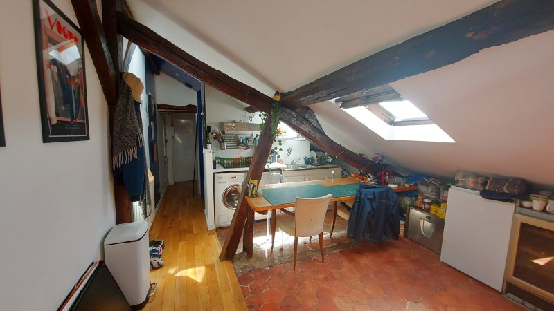 IDÉAL 1er achat ou Investisseur, Boulevard de la Reine dans un bel immeuble ancien, en plein coeur de Versailles, CHARME FOU pour cet Appartement 2/3P de 27.75m2 en surface carrez et 61.59m2 en surface habitable, en dernier étage sous combles, lumineux avec une exposition ouest, ATYPIQUE, entièrement RÉNOVÉ et entièrement ISOLÉ en 2021, comprenant une cuisine dinatoire, un salon avec grand écran TV intégré, 1 chambre ou 1 chambre et un petit bureau, une salle de douche, WC indépendant. Parquet, poutres, tomettes, porte blindée... CACHET de l'ancien assuré. Rénové avec matériaux de qualité : Isolation Triso-super 9, Chauffage électrique à inertie fluide ALCANTARA 2, VMC double flux haut rendement. Petite copropriété bien entretenue avec faibles charges, cage d'escalier refaite en 2022. À deux pas du bassin de Neptune, à 9min' à pied de la gare Rive Droite (ligne L). Une cave voutée complète ce bien. Montant estimé des dépenses entre 810EUR et 1130EUR Année de référence 2021. Les informations sur les risques auxquels ce bien est exposé, sont disponibles sur le site Géorisques : www.georisques.gouv.fr Agence IMMO DE FRANCE VERSAILLES : BIDON Ghislaine