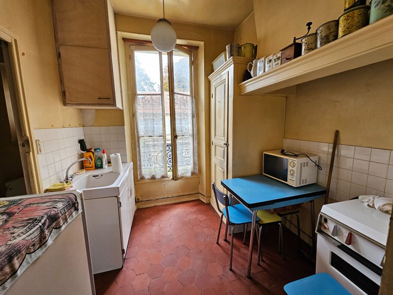 Cet appartement se trouve dans un immeuble en meulière du XIXe siècle composé de deux étages aux parties communes soignées. Il comprend une entrée et trois pièces parquetées, chacune équipée d'une cheminée, une cuisine et salle d'eau/wc.