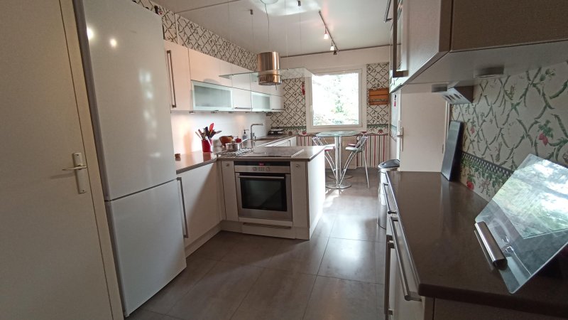 Au dernier étage, magnifique duplex familial traversant de 125,6 m2 comprenant une belle entrée donnant sur le double séjour de 36 m2, avec cheminée, ayant accès à une terrasse de 12 m2 orientée sud, sans vis à vis, une cuisine séparée avec accès terrasse, un dégagement avec placards, deux chambres dont une suite parentale avec dressing, salle de bains avec toilettes, salle de douche et toilettes indépendantes. A l'étage, un palier dessert deux chambres avec placards et un accès à un grenier mansardé de 17 m2 pour du rangemenet supplémentaire. Baies vitrées en double vitrage. Une grande cave et deux emplacements de parking en sous-sol complètent le bien. Beaux volumes, sans vis à vis, au calme avec vue sur le jardin et la forêt.