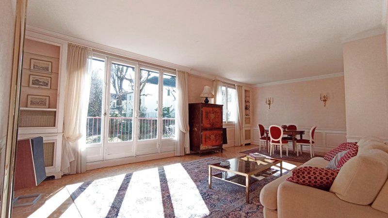 A proximité de la gare et des commerces. Dans une petite résidence calme et arborée, bel appartement traversant de 126 m2 comprenant un grand séjour de 31 m2 orienté sud pouvant être réuni avec la cuisine et son arrière cuisne/ buanderie, trois belles chambres, dégagement, une salle de bains, une salle d'eau avec toilettes, des toilettes séparées. Une chambre de service attenante de 12 m2 avec point d'eau et toilettes est également comprise dans la surface. Une grande cave et un box complètent le bien.