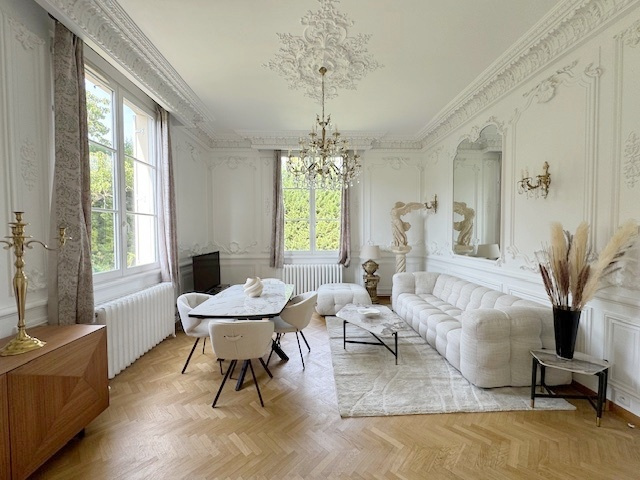 L'AGENCE DE VILLENNES vous propose en exclusivité, un très bel appartement de grand standing situé dans un magnifique parc aux arbres centenaires. Au 1er étage avec ascenseur, il se compose d'une entrée ouvrant sur un lumineux salon/salle à manger de 44 m2 aux murs et plafonds ornés de moulures exceptionnelles, parquet au sol dans tout l'appartement, cuisine équipée neuve, une chambre avec placard et dressing, deux autres chambres dont une avec placard, salle de douche, toilettes séparées. Une cave et deux places de parking en sous-sol complètent ce bien. Belles prestations. Accès rapide A13/14, gare SNCF de VILLENNES (futur RER E), gare de POISSY (RER A).