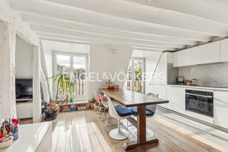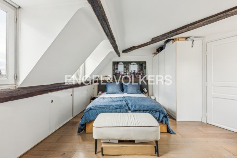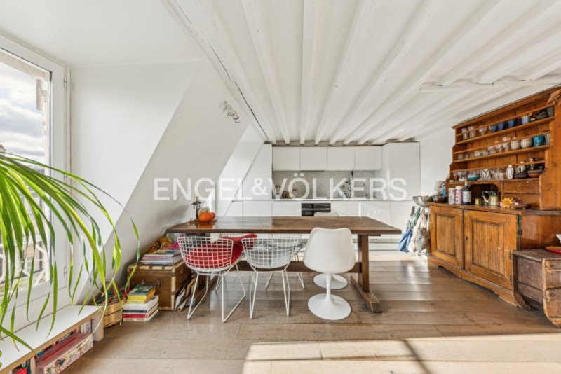 Engel & Völkers vous invite à découvrir ce duplex traversant d'une superficie de 82.70m² au sol et 66.23m² Carrez, avec un balcon-terrasse de 8m² exposé Sud bénéficiant d'une vue directe sur la place Dauphine. Au 6ème étage par l'escalier d'un bel immeuble sécurisé et bâti au début du XVIe siècle, cet appartement chaleureux se compose au premier niveau, d'une entrée, un double séjour avec un grand balcon filant, une cuisine ouverte entièrement équipée, une chambre aménagée avec sa salle d'eau et WC attenants.