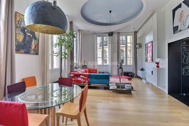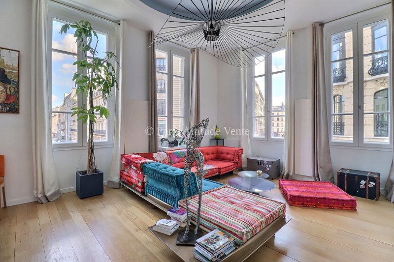 Idéalement situé à l'angle de la rue Notre-Dame des Victoires et de la Place de la Bourse, cet appartement rare et atypique bénéficie d'un emplacement emblématique au coeur du 2e arrondissement de Paris, à proximité immédiate de la ligne 3. D'une surface de 126,6 m² loi Carrez (et 142,55 m² au sol), ce bien séduit immédiatement par ses volumes et son cachet unique.