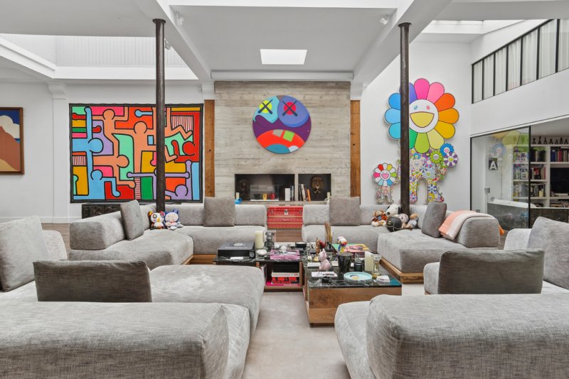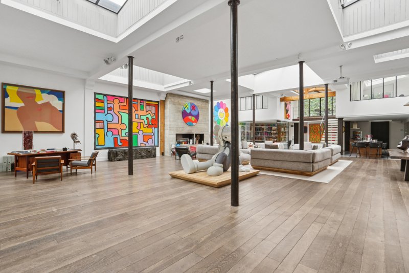 La partie contemporaine développe de vastes volumes de réception autour d'un séjour cathédrale culminant à près de 6 m de hauteur, comprenant cuisine, salle à manger et salon. Une chambre d'amis avec salle d'eau et une buanderie complètent l'organisation.