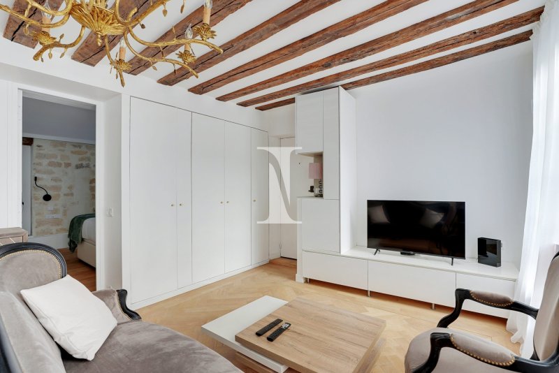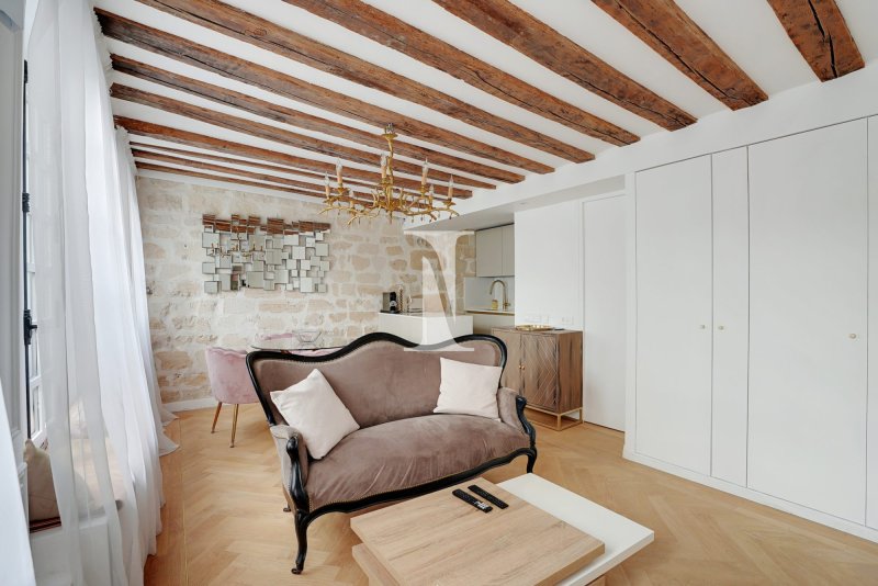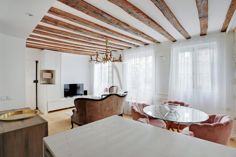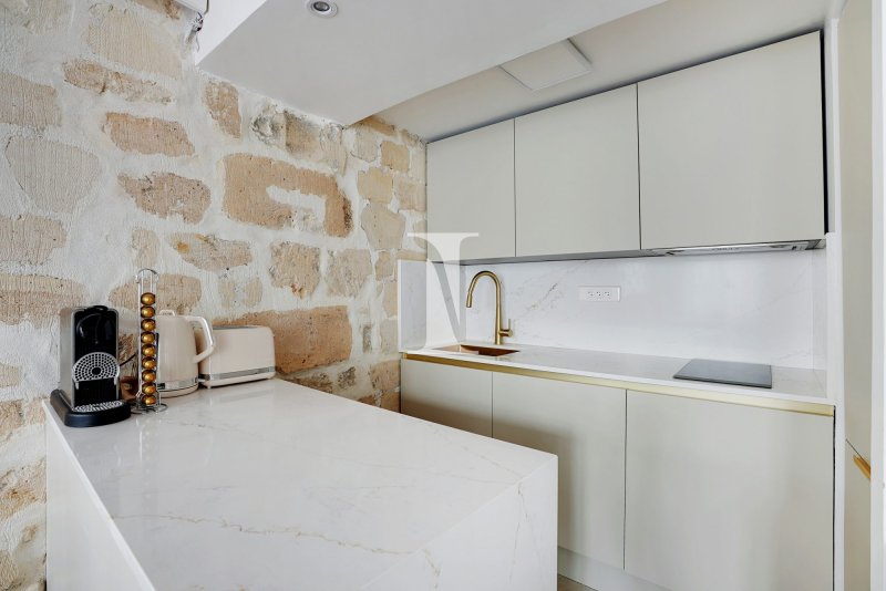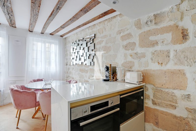 Appartement de deux pièces entièrement rénové et repensé par un architecte, situé dans le 3e arrondissement de Paris, près du quartier des Archives et du marché des Enfants Rouges. L'appartement comprend une entrée, un séjour, une cuisine équipée avec des appareils Siemens neufs, un îlot central et un plan de travail en Silestone. La chambre est équipée d'un lit double king size et d'un lit superposé escamotable. Il y a aussi une salle d'eau avec des WC et une cave. Les finitions sont de haute qualité, avec notamment un parquet en chêne massif, des fenêtres en chêne massif, et une électricité, plomberie et peintures refaites à neuf. L'appartement est bien situé, à proximité des commerces, restaurants et transports en commun. Honoraires inclus de 0.75% TTC à la charge de l'acquéreur. Prix hors honoraires 534 000 . Dans une copropriété de 28 lots. Aucune procédure n'est en cours. Classe énergie E, Classe climat B Montant estimé des dépenses annuelles d'énergie pour un usage standard : entre 860.00 et 1190.00 sur les années 2021, 2022 et 2023 (abonnements compris). Les informations sur les risques auxquels ce bien est exposé sont disponibles sur le site Géorisques : georisques.gouv.fr.