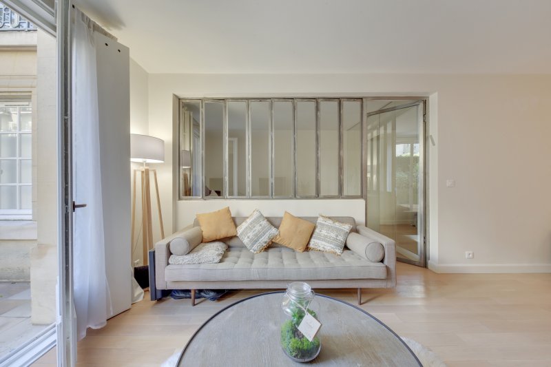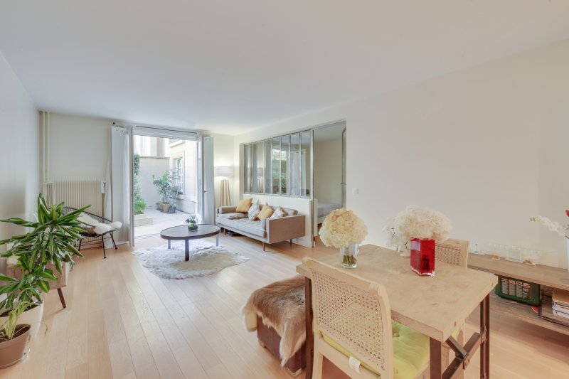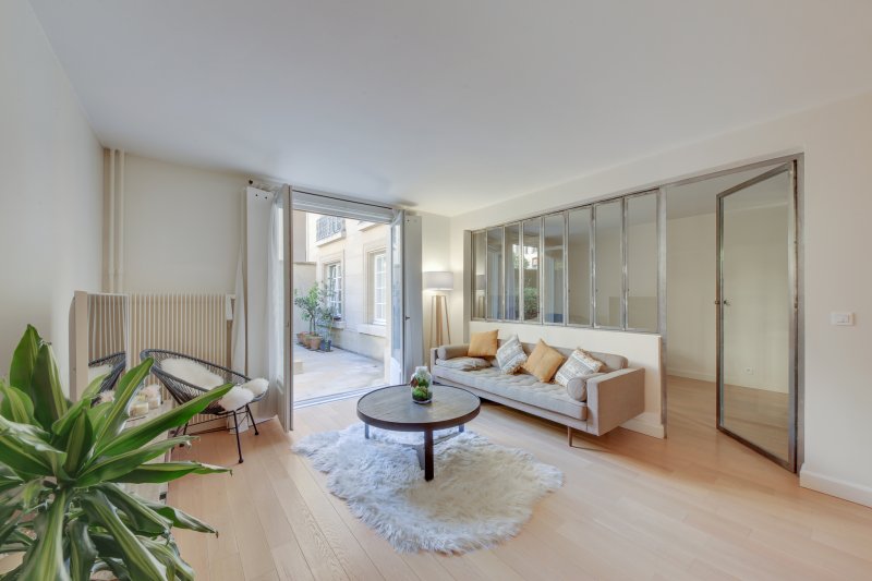 Paris 3ème - Le Marais. Situé dans un emplacement prisé au coeur du Marais, cet appartement de prestige se trouve dans un hôtel particulier du XVIIème siècle réhabilité, offrant un cadre de vie exceptionnel avec un système de haute sécurité comprenant un gardien et une vidéosurveillance 24h/24. Ce magnifique deux pièces s'ouvre sur une agréable terrasse et se compose d'un grand séjour avec coin repas, d'une cuisine ouverte entièrement équipée et aménagée, et d'un espace chambre délimité par une superbe verrière contemporaine. La salle d'eau est dotée d'une douche à l'italienne et d'un WC. L'appartement, en parfait état, allie confort moderne et charme de l'ancien avec son parquet et ses fenêtres à la française. Il bénéficie d'une décoration raffinée et de prestations de qualité, idéal pour un pied-à-terre. Une cave complète ce bien de luxe. Pour organiser une visite, contactez sans tarder Paris Vendôme Luxury - International Realty. Paris Vendôme Luxury | International Realty