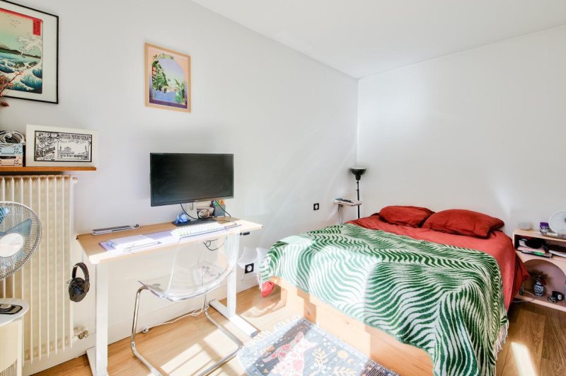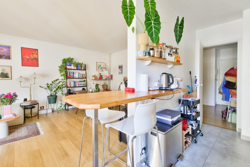 Calme, très lumineux, l'appartement bénéficie d'une vue sur les toits parisiens et d'une cave