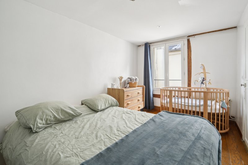 Dans le prolongement, la chambre de bonne dimension donne elle aussi sur la cour au calme.