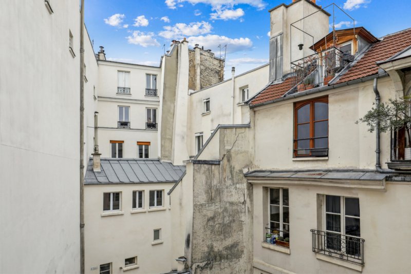 Grâce à ses nombreuses fenêtres et à une vue dégagée sur cour, l'appartement bénéficie d'une luminosité tout en offrant un environnement calme.