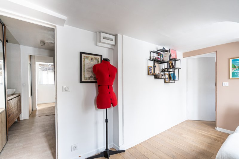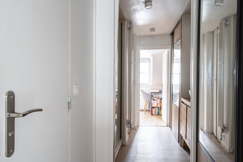 Si la porte Saint-Martin faisait autrefois partie de l'enceinte Charles V et donc des limites de Paris, elle est aujourd'hui un point central et stratégique de la capitale. Les trois lignes de métro (4, 8 et 9) contribuent bien sûr à cette situation idéale, mais le quartier est surtout à la croisée de plusieurs lieux recherchés. En effet, nous sommes ici à la frontière du Haut-Marais et des Grand Boulevards. On atteint le quartier historique du Marais à pied en quelques minutes, tandis que les boulevards concentrent les théâtres parisiens les plus célèbres. Entre la rue Saint-Martin et le Boulevard Sebastopol, qui structurent cette partie de la rive droite, la rue Sainte-Apolline est à l'image de ce quartier en métamorphose, où les salles de spectacles et les passages côtoient les galeries d'art, les restaurants tendances et autres concept stores inspirés. L'endroit est donc vibrant mais, comme dans cette rue, on sait y trouver des havres de paix. C'est le cas de cet appartement de 70 m2 présenté en exclusivité par l'Agence [.VOUS.], au 5e étage (par escalier) d'un immeuble discret et prochainement embelli. (Ravalement de façade et réfection de la toiture votés, financés et en cours de finalisation). Entièrement refait avec goût, il révèle une atmosphère singulière et cosy, où la lumière naturelle pénètre aisément grâce à sa triple exposition et sa situation en hauteur. Dans la pièce principale, ce sont surtout les poutres apparentes au plafond, accompagnées du parquet et de volumes authentiques, qui confèrent à ce bien un cachet et un confort appréciable. Comme le reste de l'appartement, le séjour est baigné de lumière et allie le charme de l'ancien à un aménagement moderne, puisqu'il s'articule autour d'une cuisine ouverte pensée comme un véritable espace de convivialité. À travers les fenêtres, les portes vitrées ou grâce à l'élégant parquet, la clarté se retrouve aussi dans la chambre parentale, dotée d'un dressing. La salle de bain fonctionnelle s'inscrit dans la continuité de cette rénovation soignée. Une chambre d'enfant ainsi qu'un bureau complètent cette distribution efficace et familiale. Enfin, un grenier de 6m2 fait partie intégrante du bien, il ajoute des espaces de rangement précieux ou la possibilité d'une plus grande hauteur sous plafond. Le cachet de l'ancien dialogue ainsi avec une rénovation contemporaine maîtrisée, et trace une frontière subtile entre caractère et modernité. Ce bien se vit alors comme un véritable cocon, qui sera le centre d'une vie paisible et agréable au-dessus d'une ville qui s'ouvre sans limite. Pour toute information complémentaire ou demande de visite, nous vous invitons à contacter Mme Julie SEVESTRE julie.sevestre@vous.immo 06 02 41 90 11. Honoraires d'agence intégralement à la charge du vendeur. La présente annonce immobilière a été rédigée sous la responsabilité éditoriale de Julie SEVESTRE EI (ID893936302), mandataire indépendant en immobilier (sans détention de fonds), agent commercial de la SAS JPMF immatriculé au RSAC de PARIS sous le numéro 908370398.