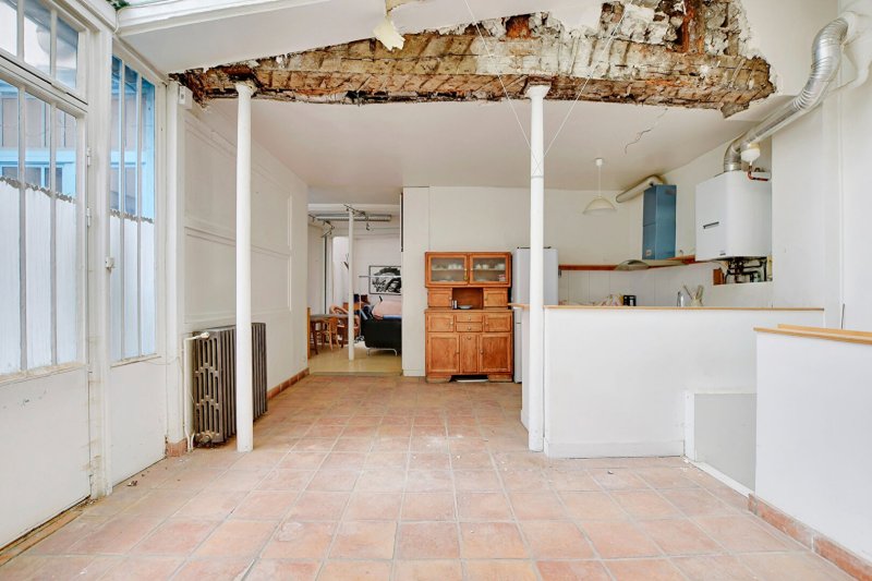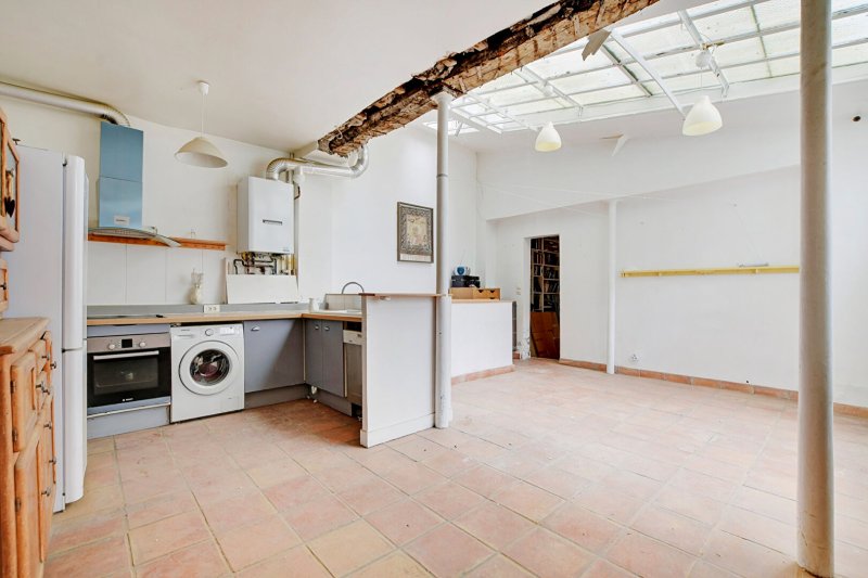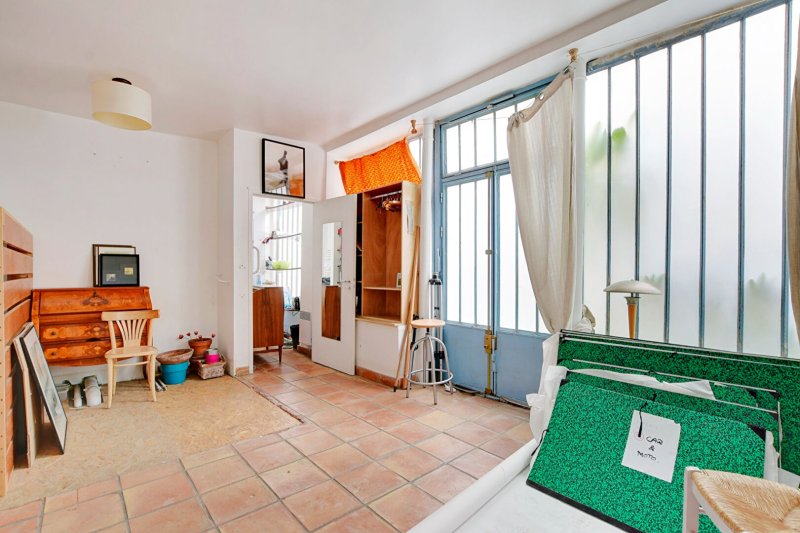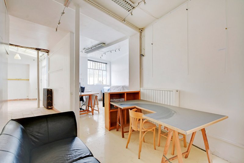 Dans une copropriété calme et très bien entretenue du XIXème siècle, un ancien atelier d'artiste entièrement à rénover, composé actuellement d'une pièce de vie avec cuisine ouverte aménagée, un accès direct et unique à deux caves saines, deux chambres avec salle d'eau, une pièce à usage de bureau et une pièce aveugle pour le développement des photographies.