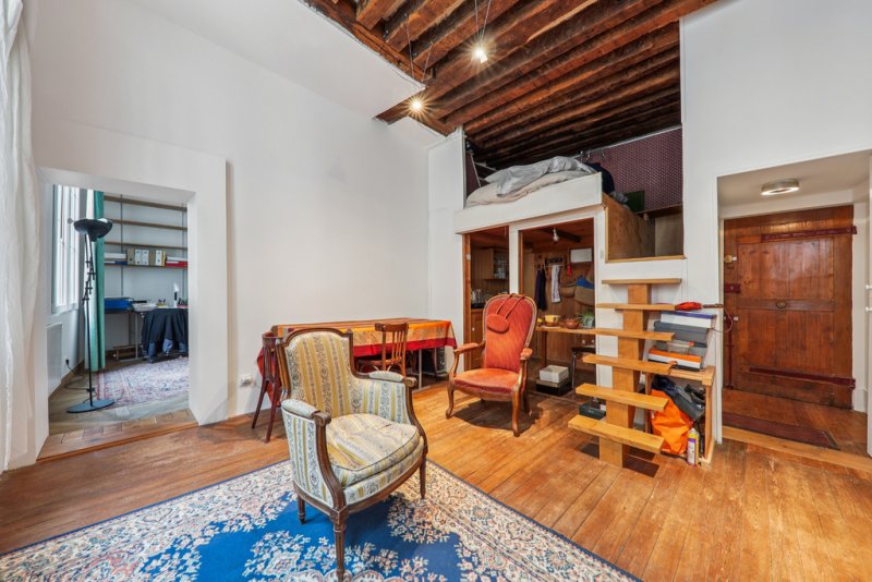 Au coeur du Marais, sur la célèbre Rue des Rosiers, ce 2 pièces de 45 m² au sol (39 m² loi Carrez) vous plonge dans l'histoire de Paris.