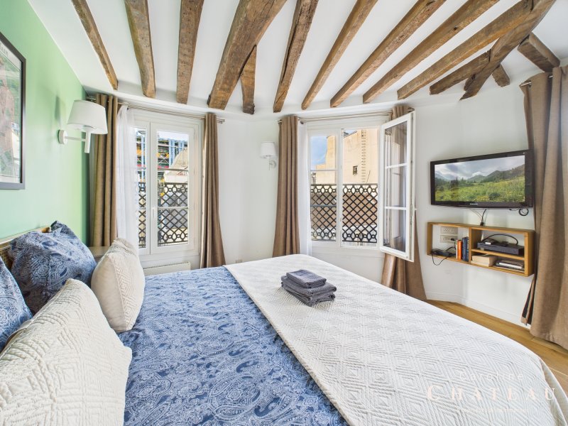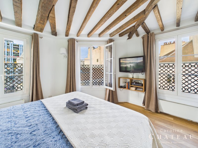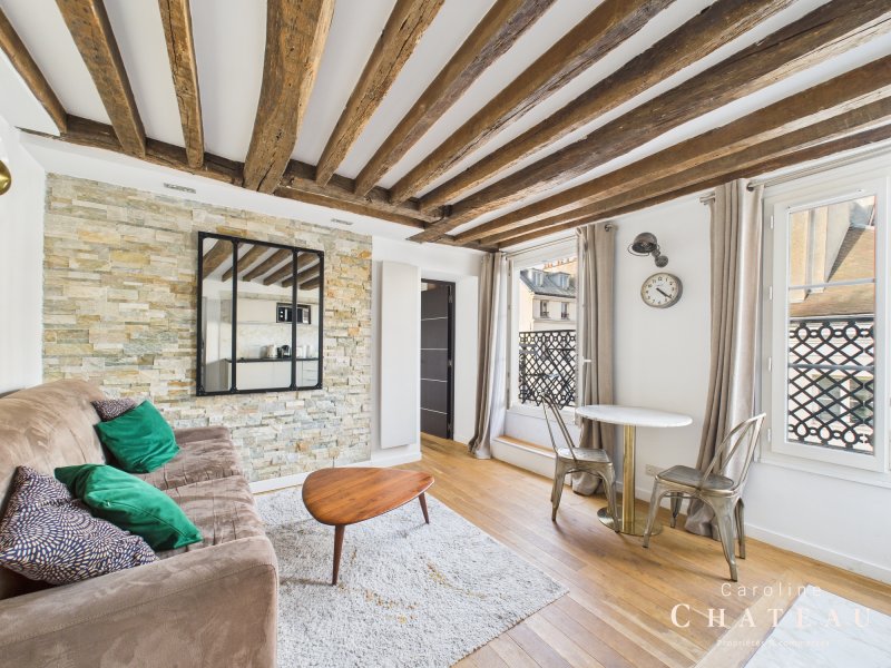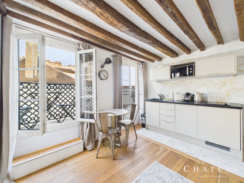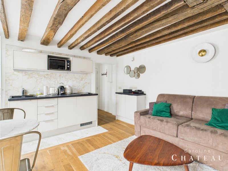 Au sein d'un bel immeuble de 1845 et idéalement situé au coeur du Marais, Caroline Chateau vous propose à la vente ce très bel appartement entièrement rénové par architecte en 2024 d'une superficie de 33,64 m2 loi carrez et 9,3 m2 de balcons filants. Il se compose, d'une entrée desservant une salle d'eau avec WC et machine à laver, un séjour avec une cuisine entièrement équipée et aménagée, une chambre avec dressing. Vous apprécierez sa triple exposition, sa luminosité grâce à ses 6 fenêtres, et chacune des pièces ont un accès direct au balcon filant avec vues sur les toits de Paris et le Centre Pompidou. Une cave commune partagée complète ce bien. Beaux matériaux tout en conservant le charme de l'ancien. Prestations HAUT DE GAMME. Vendu MEUBLE. Bien RARE - Localisation unique au coeur du Marais À visiter sans tarder ! Prix de vente : 565 000EUR FAI (honoaires inclus dans le pix de vente à la charge de l'acquéreur) - Provisions pour charges mensuelles : 122EUR Taxes foncières (2025) : 426EUR