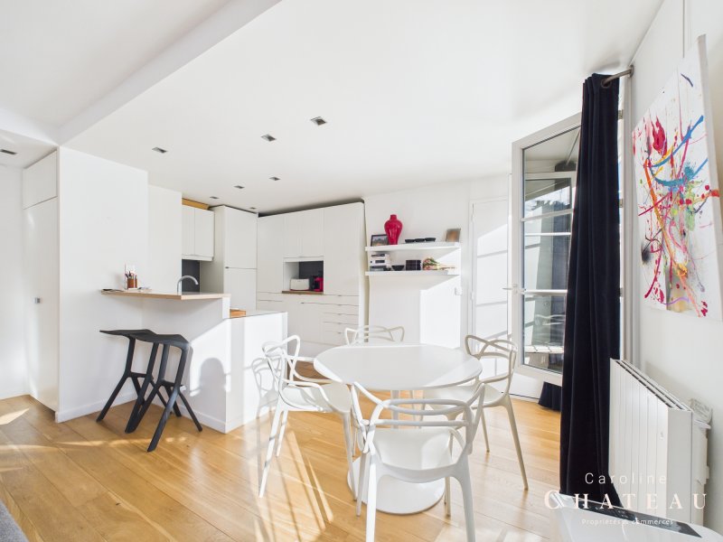 EXCLUSIVITE CAROLINE CHATEAU - Nous vous proposons à la vente ce très bel appartement situé au coeur du Marais au sein d'un joli immeuble de 1745. Au 3ème étage sans ascenseur sur cour et au calme absolu, cet appartement d'une superficie de 57,03m2 loi Carrez se compose d'un beau séjour avec une cuisine entièrement équipée et aménagée d'une superficie de 37 m2 baigné de lumière grâce à son exposition SUD-EST et ses 3 fenêtres, une chambre avec dressing de 14 m2 avec sa salle d'eau attenante comprenant une belle douche et un wc indépendant. Vous apprécierez sa LUMINOSITÉ, grâce à son exposition SUD EST. Appartement climatisé - Belles prestations. Une cave complète ce bien. Très beau 2 pièces - BIEN RARE - CALME ABSOLU - Localisation unique au coeur du Marais À visiter sans tarder ! DPE : C Prix de vente : 787 500EUR FAI (honoraires de 5% TTC inclus dans le prix de vente à la charge de l'acquéreur) Provisions pour charges mensuelles : 113EUR Taxes foncières (2025) : 968EUR AGENCE CAROLINE CHATEAU - ACHAT - VENTE - LOCATION - ESTIMATION - SUCCESSION