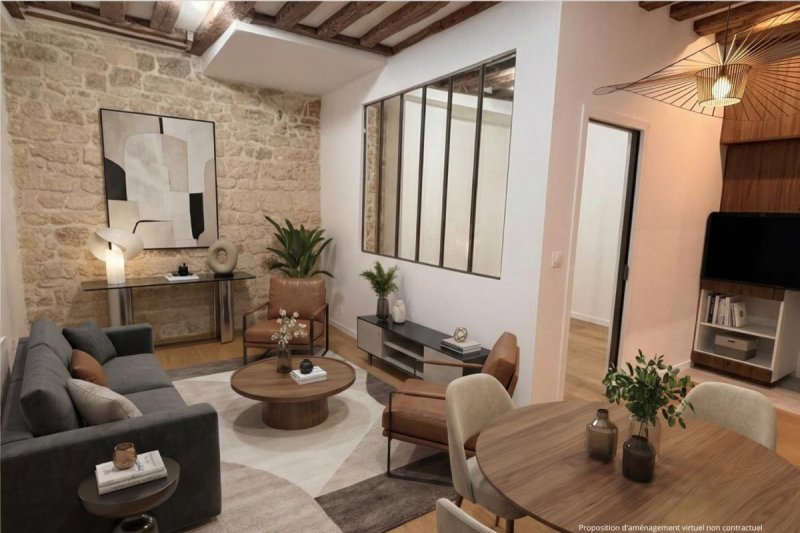 Au coeur de Paris, cet appartement de 34 m² en parfait état offre 2 pièces, 1 chambre et 1 salle de bains, au sein d'un immeuble de caractère datant de 1770.