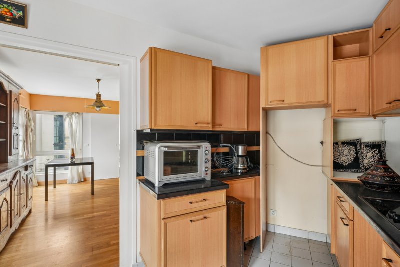 Baigné de lumière, l'appartement profite en outre d'une jolie vue sur le Théâtre du Renard, apportant à l'ensemble une touche de caractère supplémentaire.