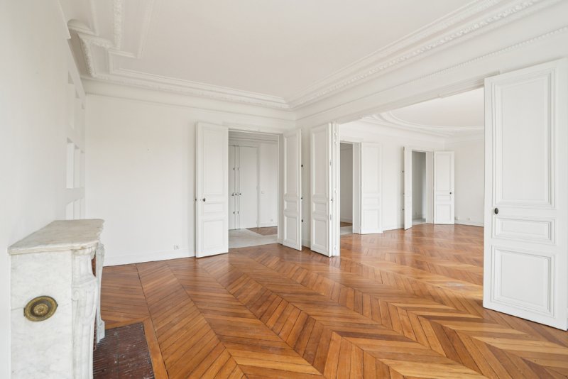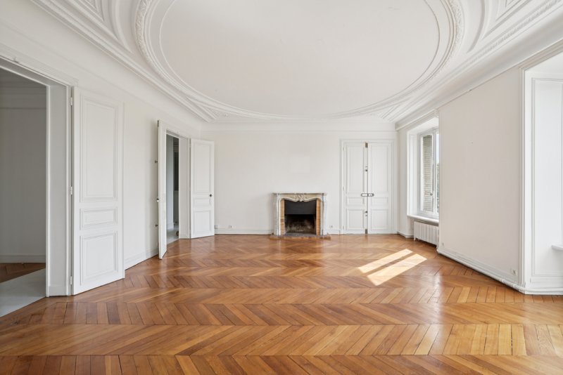 De votre entrée, vous serez séduit par l'atmosphère raffinée et chaleureuse des lieux. Les plafonds de 3 mètres de hauteur, le parquet en point de hongrie , les cheminées en marbre et les moulures d'origine confèrent à cet appartement un charme parisien intemporel.