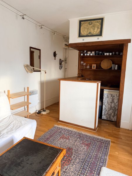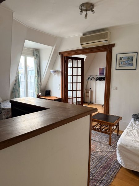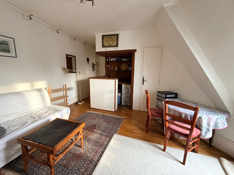 Au coeur du Quartier Latin, métro Cardinal Lemoine ou Jussieu, dans un immeuble pierre de taille de standing, au dernier étage sans ascenseur offrant une vue dégagée sur la Panthéon. appartement de deux pièces superficie au sol de 30,33 M2. Entrée, séjour avec cuisine ouverte, chambre avec mezzanine et bureau. Salle de douche et wc. Charme de l'ancien, chauffage individuel électrique. Double vitrage total. Idéal pied à terre ou investissement locatif.