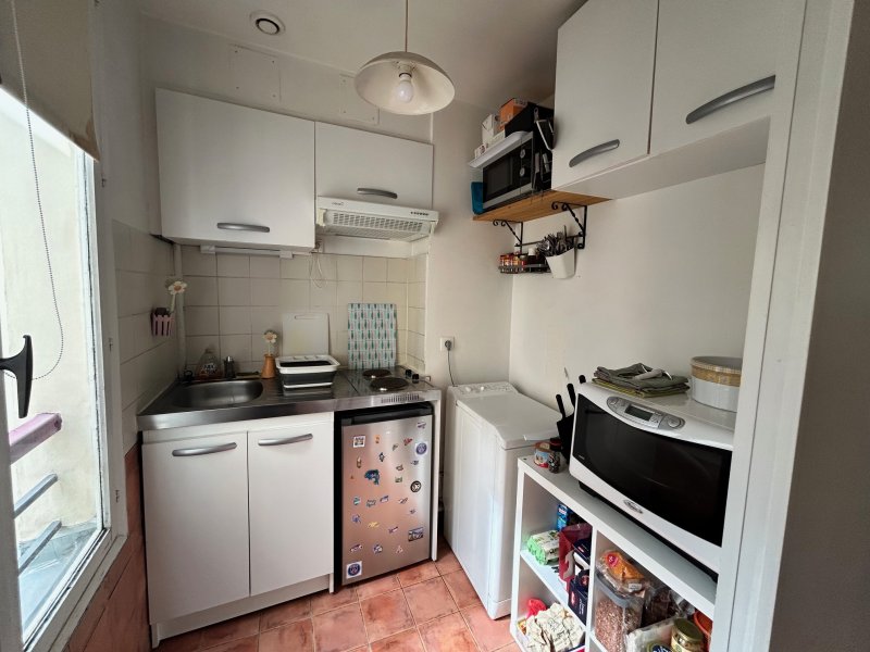 Nous vous proposons à l'achat, un appartement F2 - occupé en bail meublé - d'une surface de 27,37 m2, en 3e étage d'un immeuble ancien bien entretenu. Ravalement et volet neuf. Cet appartement occupé se compose d'une entrée donnant sur la kitchenette sur cour, un couloir distribuant sur le salon et la salle d'eau avec WC, et une chambre. Carrelage et parquet chêne. Chauffage électrique. Bail meublée de 2019 : Loyer 12.984 EUR hc /an idéal investisseur.