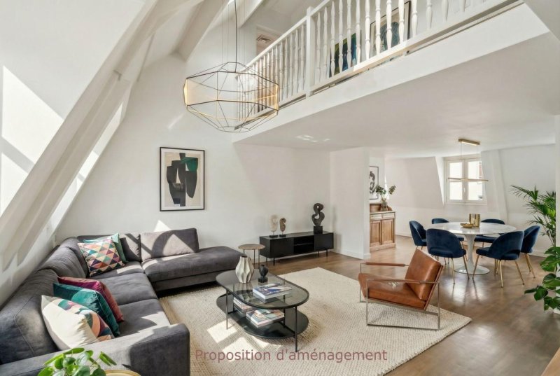 Développant 143 m2 au sol dont 116 m2 Carrez, ce lieu singulier séduit immédiatement par son architecture atypique, sa mezzanine élégante, ses volumes généreux et son esprit de maison perchée aux derniers étages d'un immeuble du XVIIIème siècle. L'ensemble bénéficie d'une belle luminosité, portée par des vues dégagées sur les toits de Paris et sur la majestueuse enceinte de Philippe Auguste, témoignage précieux de l'histoire médiévale de la capitale.