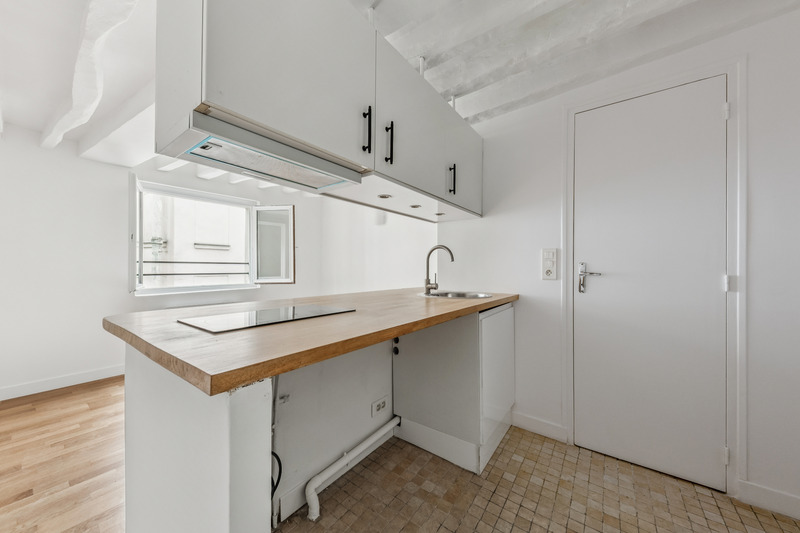 Paris VI - Au coeur de Saint-Germain-des-Prés, ce studio de 19,28 m² Carrez est situé au 3? étage par un escalier historique remarquable, source d'inspiration récurrente de l'artiste Sam Szafran.