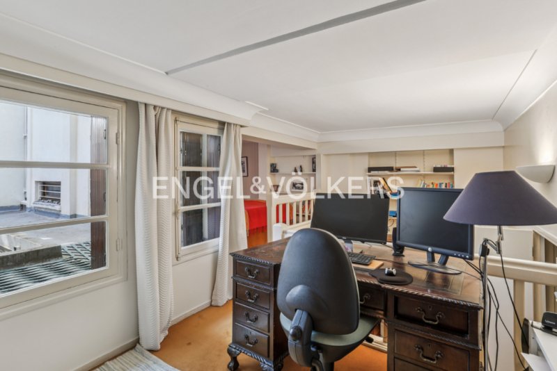 Il se développe selon un plan compact comme suit : une entrée, un beau séjour sur rue (29m²), une cuisine semi ouverte équipée, une chambre sur cour avec 2 mezzanines (partie nuit et partie bureau), des rangements, une salle de bain, un WC séparé.
