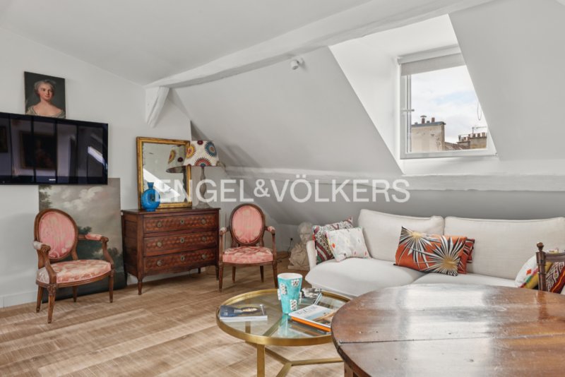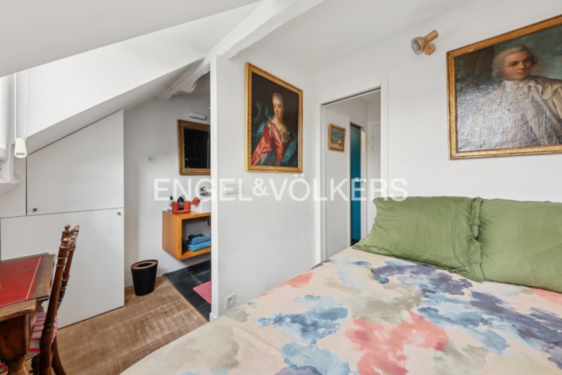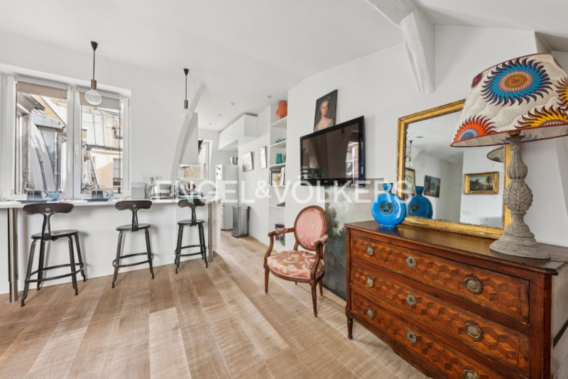 Au 5ème et dernier étage d'un immeuble du XVII? siècle, ce charmant deux-pièces de 46,42 m² au sol (32,19 m² Carrez) offre un cadre de vie exceptionnel.