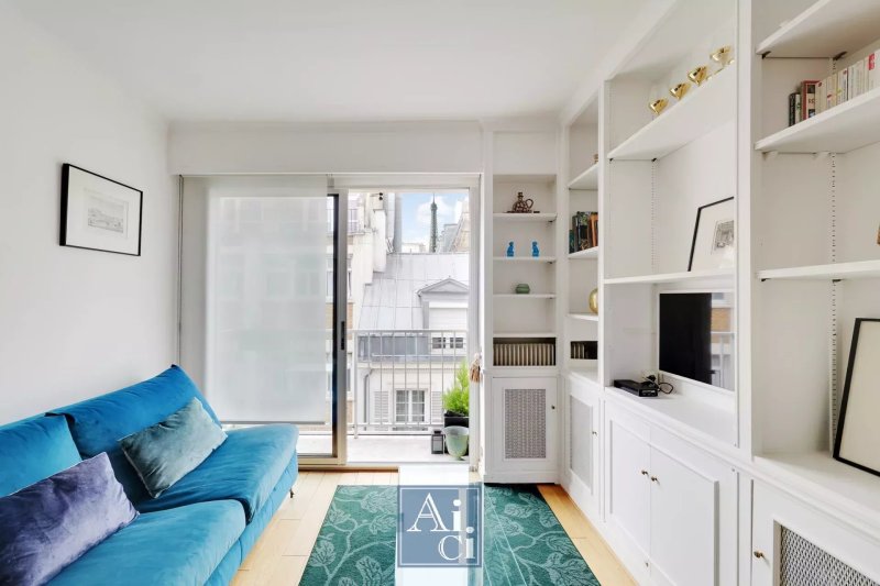 Le bien dispose d'un balcon et bénéficie d'une vue emblématique et imprenable sur les toits de Paris et la Tour Eiffel.