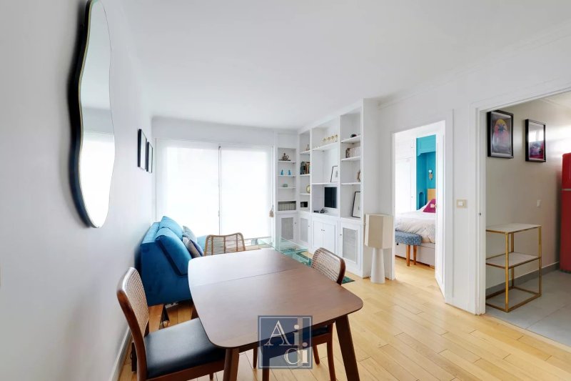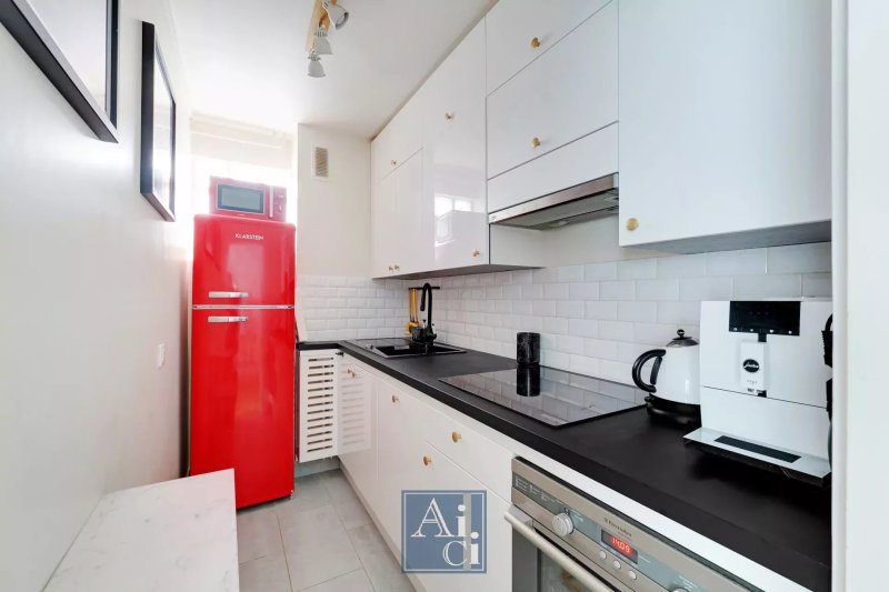 L'espace est parfaitement optimisé, offrant un séjour élégant avec parquet, une cuisine incorporée moderne.