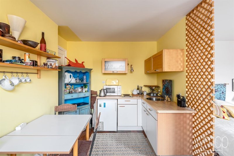 L'appartement se compose de : Une entrée, une salle de douche avec WC, un séjour lumineux avec cuisine ouverte, une chambre, une cave en sous-sol.