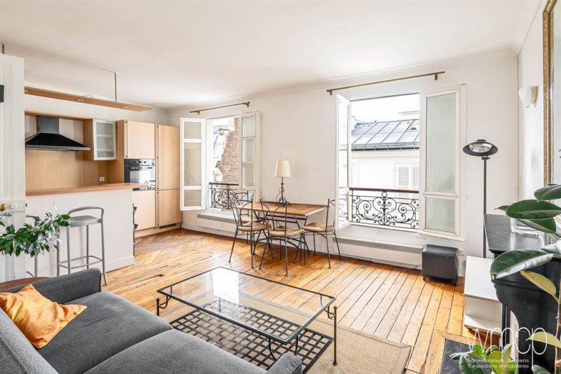 EXCLUSIVITÉ - Gros Caillou/rue Saint Dominique, Au 5ème étage AVEC ascenseur, un 2 pièces de 45 m2 (44,52 m2 Loi Carrez), immeuble ancien ravalé, comprenant : entrée avec penderie, double séjour rue rue avec 2 fenêtres double vitrage, une chambre sur cour cour calme et lumineuse, salle de bains et wc séparés. Parquet, moulures et cheminées. Vue dégagée plein ouest, calme et ensoleillé. Cave au sous sol. Plan parfait.