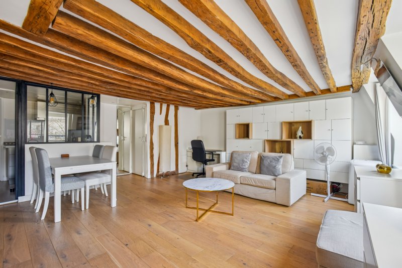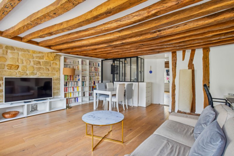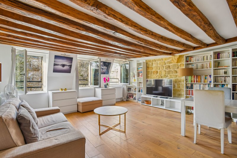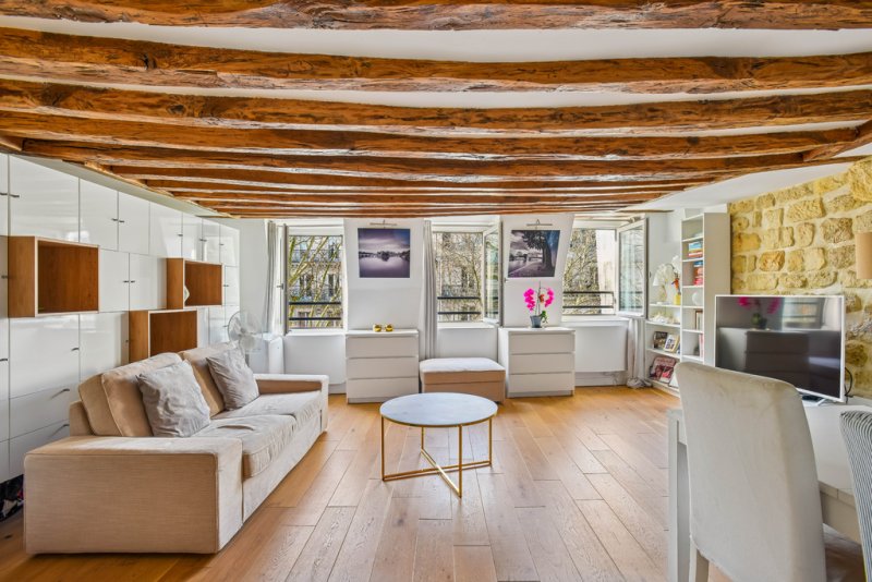 Situé sur le Boulevard Saint-Germain, au croisement de la rue des Saints-Pères, dans l'un des emplacements les plus emblématiques de la rive gauche, cet appartement de 50,35 m² loi Carrez se trouve au cinquième étage par escalier d'un immeuble ancien rénové.