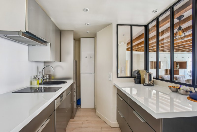 Il bénéficie d'une distribution optimisée et équilibrée : une agréable pièce de réception donnant sur le boulevard, une cuisine avec verrière entièrement aménagée et équipée, une chambre confortable au calme sur cour, ainsi qu'une salle de bains avec toilettes.