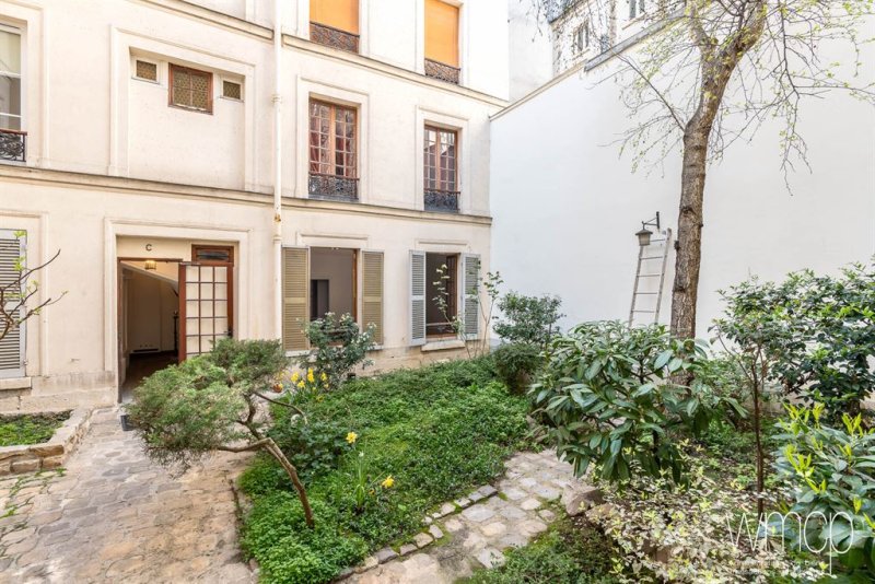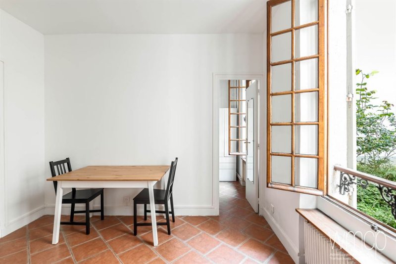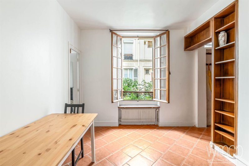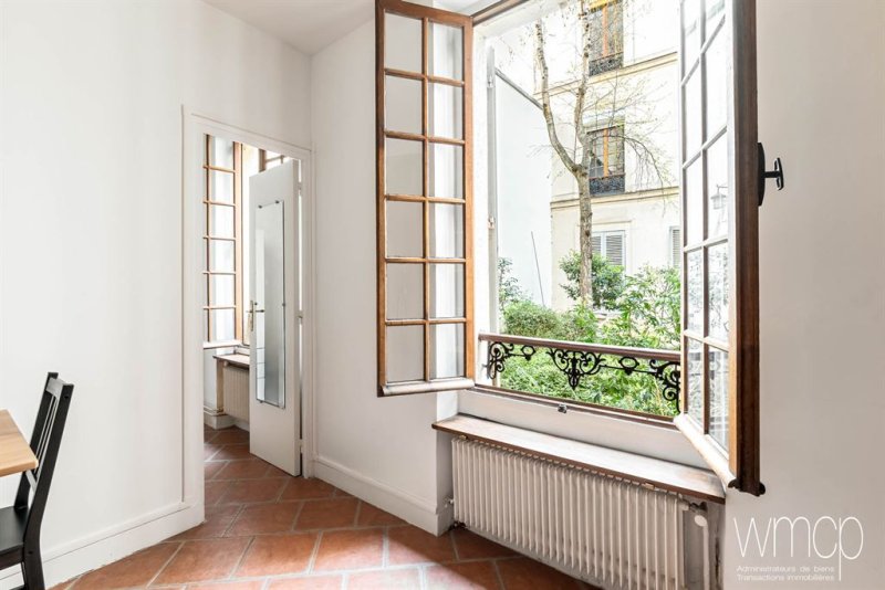 EXCLUSIVITÉ - Rue Cler partie piétonne proche Motte Picquet - Un 2 pièces de 24 m2 Loi Carrez, au calme sur beau jardin, comprenant entrée, séjour, chambre, cuisine, salle de bains avec wc.