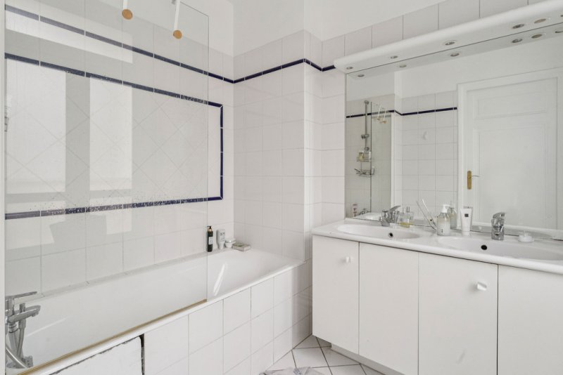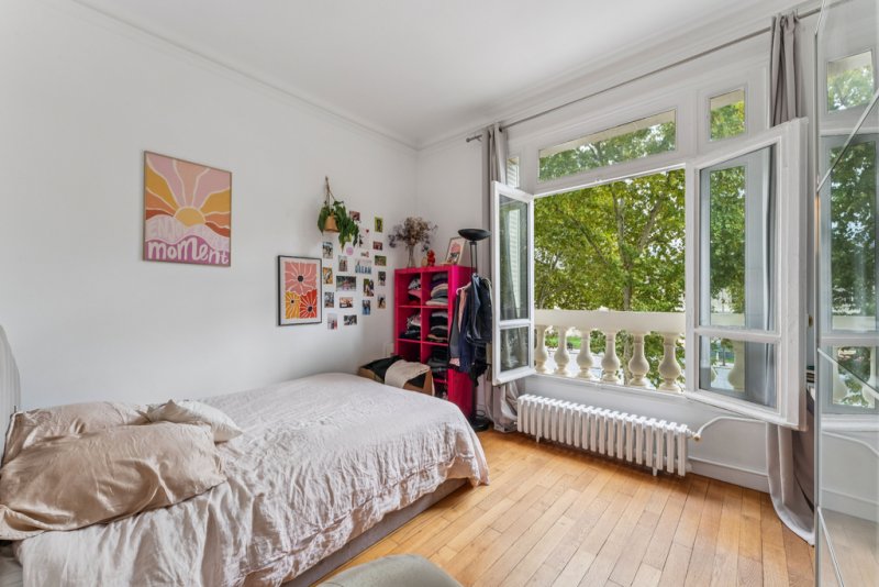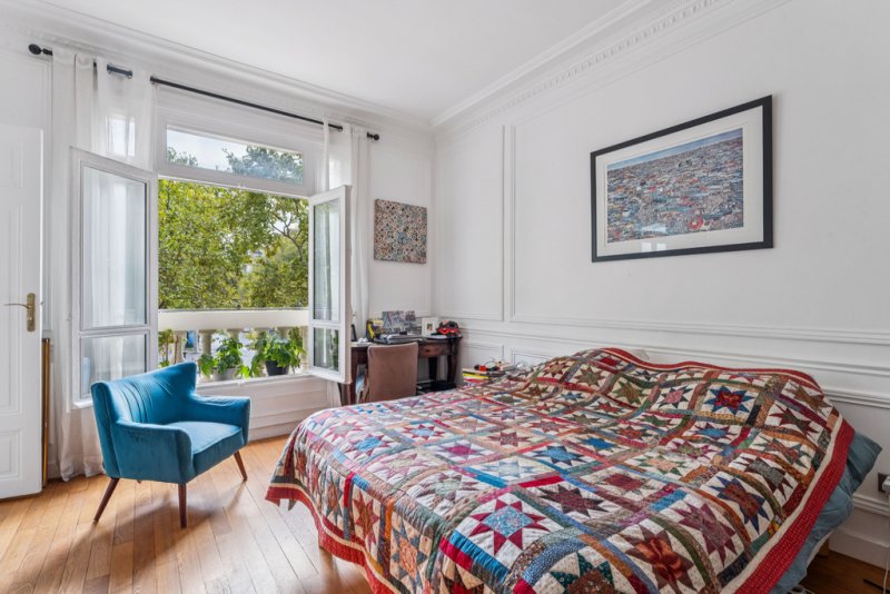 L'espace nuit comprend quatre chambres, dont trois suites disposant chacune de leur salle d'eau ou salle de bain attenante. Une buanderie discrètement positionnée à proximité complète l'ensemble, tandis que de nombreux rangements renforcent le confort au quotidien. Le charme de l'ancien est parfaitement préservé : parquet, moulures, et proportions élégantes confèrent à cet appartement une allure parisienne intemporelle.
