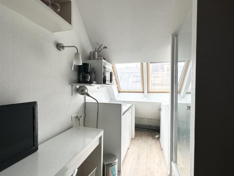 Paris 75008- Champs Elysées/George V - Au 5éme étage sans ascenseur d'un immeuble haussmannien, une chambre de service de 7.97m² Carrez et 10.68m² au sol, refait à neuf et vendu meublée.