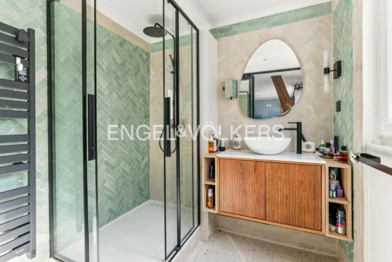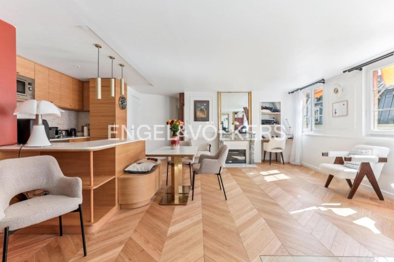 Entièrement repensé par un architecte, le bien allie avec élégance le charme de l'ancien (parquets, moulures, cheminées décoratives) et le confort contemporain d'une rénovation haut de gamme.