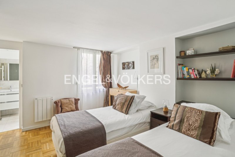 Cet appartement de 96m², agréable à vivre offre calme et sérénité en plein coeur de Paris. Il comprend une belle entrée ouverte sur un spacieux double séjour/salle à manger et une cuisine équipée semi-ouverte, de deux chambres chacune avec sa salle d'eau et l'une avec toilettes, et des toilettes invités.