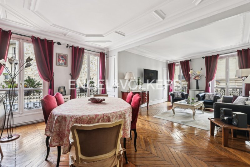 Dans un immeuble typiquement haussmannien en pierre de taille, au 4éme étage par ascenseur, un appartement traversant .